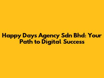 Hey there, digital enthusiasts! Let's dive into the world of Happy Days Agency Sdn Bhd, a name that's been making waves in the digital marketing scene. If you're looking to boost your online presence, you've stumbled upon the right place. This article will break down everything you need to know about Happy Days Agency Sdn Bhd, from their services to what makes them stand out in the crowded digital landscape. Get ready to explore how they can help your business thrive! So, buckle up, guys, because we're about to embark on a journey through the ins and outs of this dynamic agency. We'll explore their key offerings, the industries they serve, and what makes them a go-to choice for businesses aiming to conquer the digital realm. Whether you're a seasoned entrepreneur or just starting out, this guide will provide valuable insights into how Happy Days Agency Sdn Bhd can be your partner in achieving digital success. Understanding their approach, expertise, and commitment to innovation will help you make an informed decision about your digital marketing strategy. Let's get started, shall we?