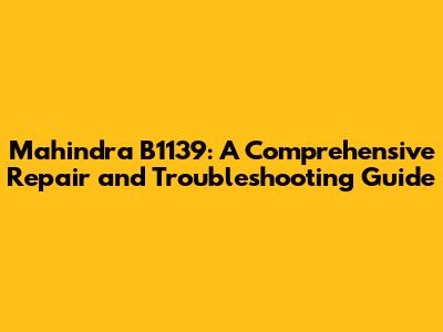 Mahindra B1139: Repair, Troubleshooting & Solutions