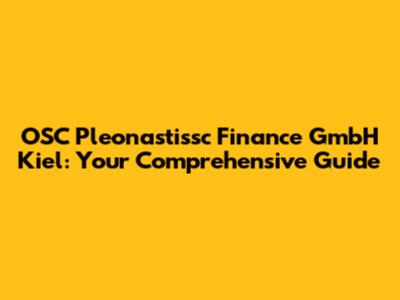 Hey guys! Ever heard of OSC Pleonastissc Finance GmbH in Kiel and wondered what they're all about? Well, you've come to the right place! This guide will dive deep into everything you need to know about this finance company, from their services to their impact on the local economy. So, buckle up and let's get started!