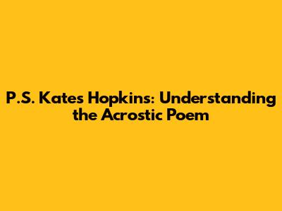 Hey guys! Ever stumbled upon a poem that looks a little… different? Maybe the first letter of each line spells out a word or a name? Well, you've likely encountered an acrostic poem, and today we're diving deep into what that means, using the super catchy phrase "P.S. Kate's Hopkins" as our guide. It's a fantastic way to get creative with words, and once you get the hang of it, you'll be whipping up your own acrostic masterpieces in no time! We're talking about a form of poetry that's been around for ages, often used for fun, for messages, or even as a way to remember things. Think of it as a secret code embedded in a poem. So, let's break down this "P.S. Kate's Hopkins" and explore the wonderful world of acrostic poetry. Get ready to flex those creative muscles, because by the end of this, you'll be an acrostic pro!