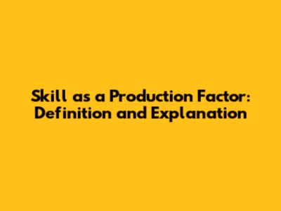 Skill As A Production Factor: Definition And Explanation