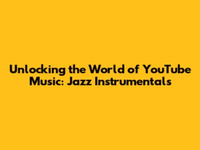 Unlocking The World Of YouTube Music: Jazz Instrumentals